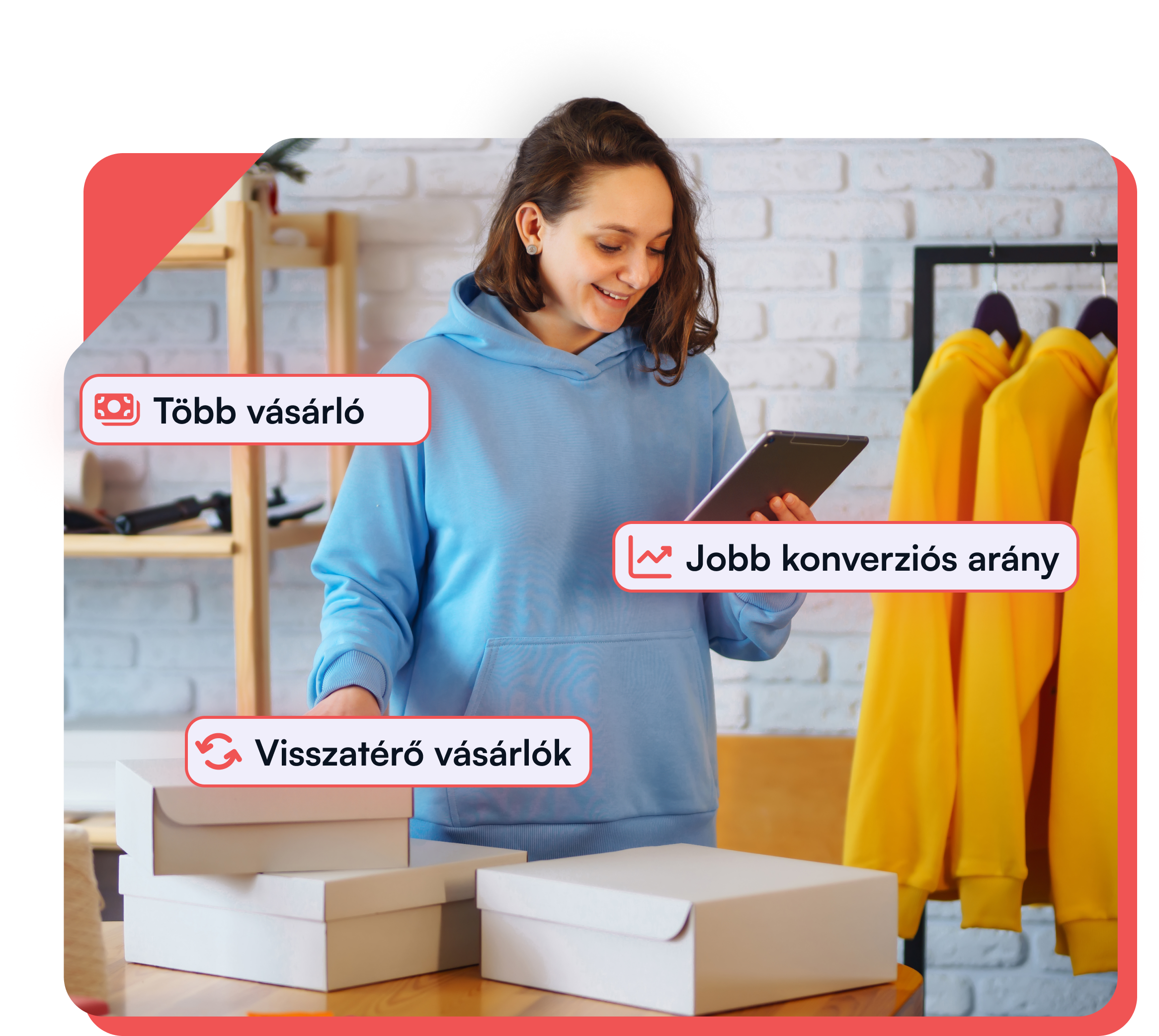 Létezik egy párhuzamos valóság, ahol a látogatóid nézelődés helyett döntést hoznak és vásárolnak. Az eredmény? Azonnali hatás: nő a konverziók száma. Hosszú távú hatás: kialakul a bizalom és elismerés a vásárlóid részéről, akik így nem csak egyszer, hanem akár többször is visszatérnek Hozzád vásárolni.